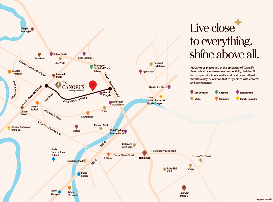 Strategically located in Wakad Centre, with excellent connectivity to IT hubs (like Hinjawadi Phase 1), educational institutions, and premium shopping destinations.